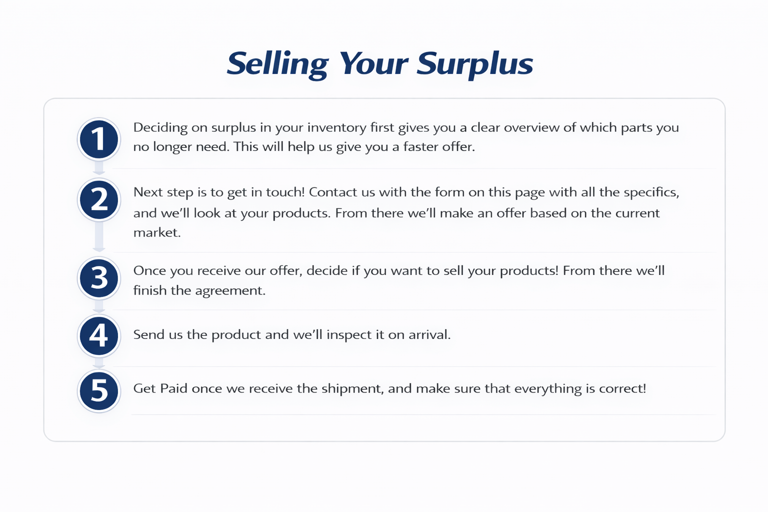 If you want a quick offer, call 1-919-443-0207 or email [email protected] with your part numbers, photos, and quantities.